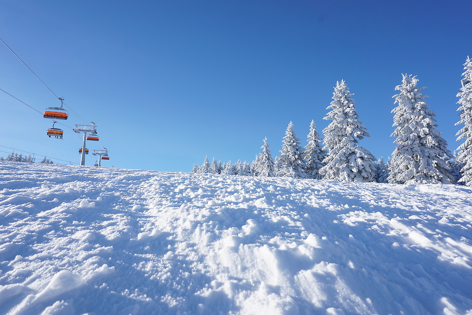 Pierwsze oznaki zimy pojawiły się w Zieleńcu wyjątkowo wcześnie. Już w połowie listopada testowo uruchomione zostały niektóre wyciągi. Ale jak to zwykle bywa, pełnia sezonu rozkręca się dopiero z nastaniem grudnia, kiedy to temperatura niemal na stałe spada poniżej zera.